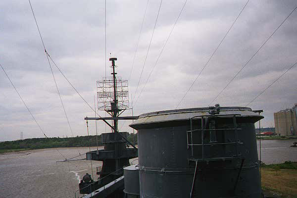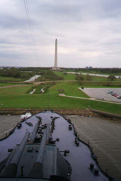 of the ship. The San Jacinto monument is on the small hill ahead. The U.S.S.