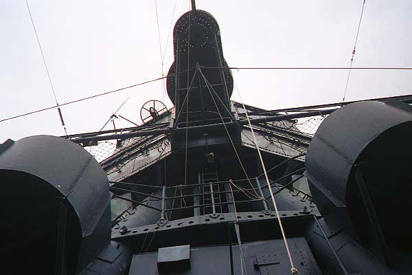 the bow. The U.S.S. Texas was the last of the steam powered battleships to